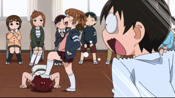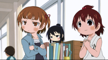 The 11 year old Marui triplets could not be any more different. The oldest one, Mitsuba, is sadistic and kind of mature for her age. The middle one, Futaba, is perverted and very athletic and has the strength of a full-grown man. The youngest one, Hitoha, is generally very quiet and gentle but when push comes to shove, she might just be the strongest, the most perverted and the most sadistic out of the three.