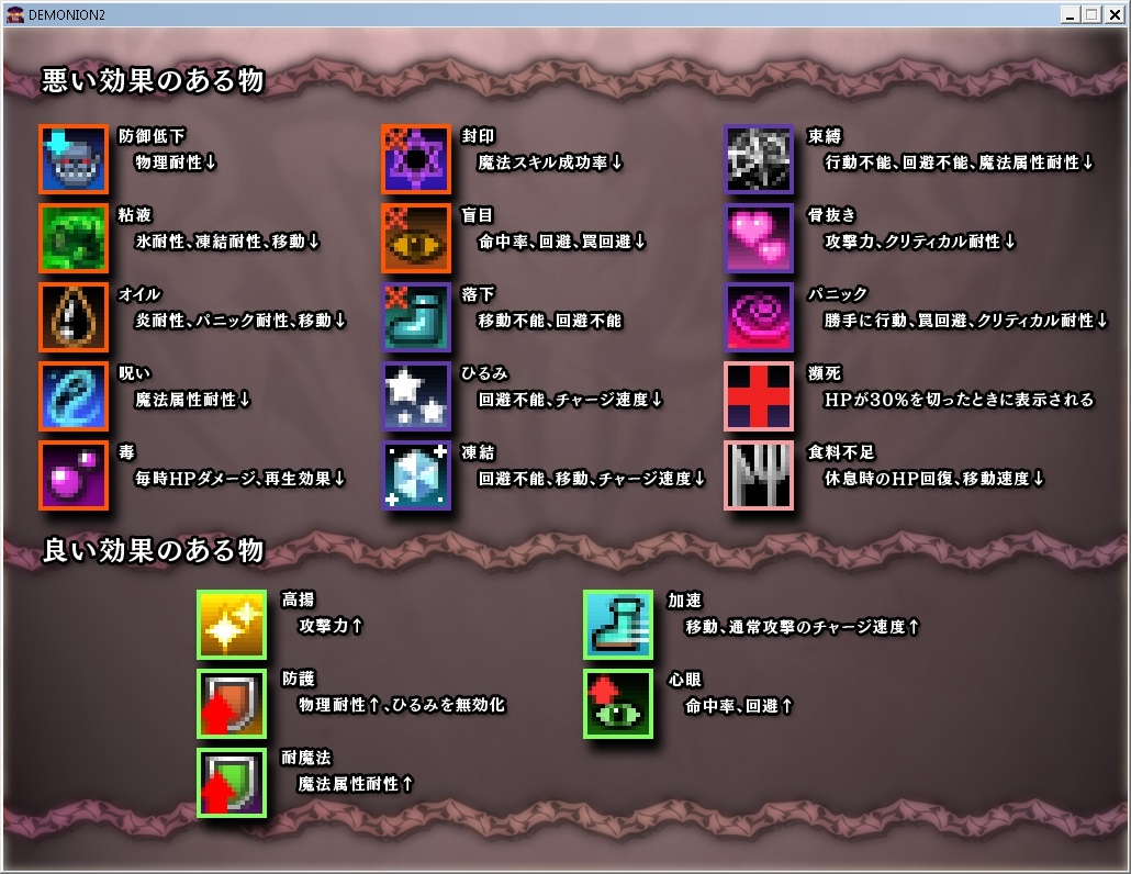 7. Fire resistance down, panic resistance down, movement speed down