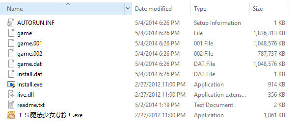 I have no idea if this is where I should be posting, very new to all of this. I am trying to install and run TS Mahou Shoujo Nao, but I keep getting an insert disc prompt. I have downloaded and extracted the game files, installed the program, and have tried converting the game "file" into an iso. Any ideas? Thanks again. I have attached a picture of my current file structure in the download folder (NOT the programs folder)
